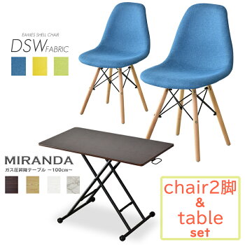 【4/29限定クーポン10%オフ】ダイニングチェア 昇降テーブル チェア テーブル セット 椅子 2脚 北欧 デザイナーズ 昇降式 無段階 高さ調節 ダイニング デスク イームズDSW-FAB ミランダ100cm 母の日