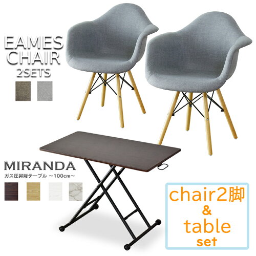 【4/29限定クーポン10%オフ】ダイニングチェア 昇降テーブル チェア テーブル セット 2脚 デザイナーズ 昇降式 無段階 高さ調節 肘掛け ダイニング デスク イームズDAW肘付き ミランダ100cm 母の日