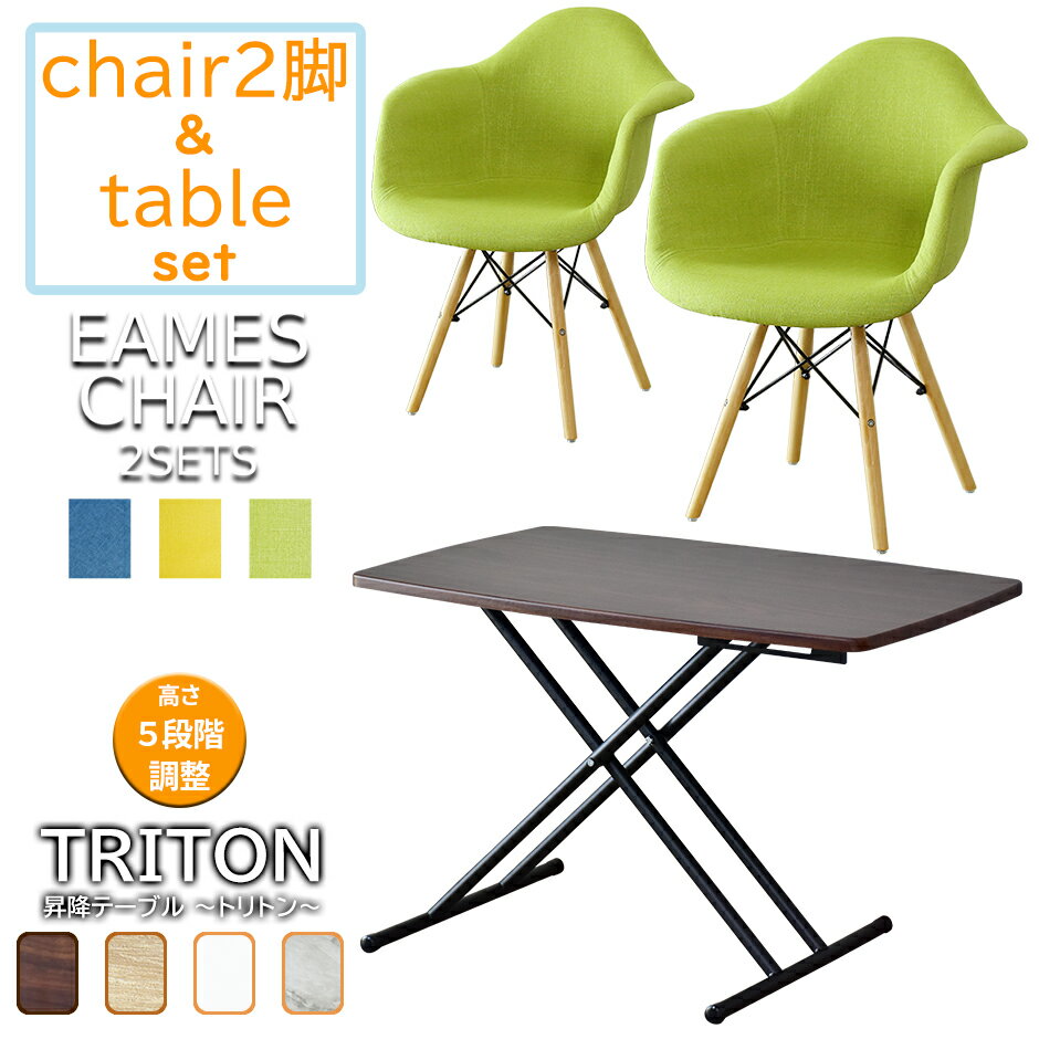 【4/29限定 クーポン10%オフ】ダイニングチェア 昇降テーブル チェア テーブル セット 2脚 デザイナーズ 昇降式 高さ調節 肘掛け ダイニング デスク イームズDAW肘付き トリトン85×55cm 母の日