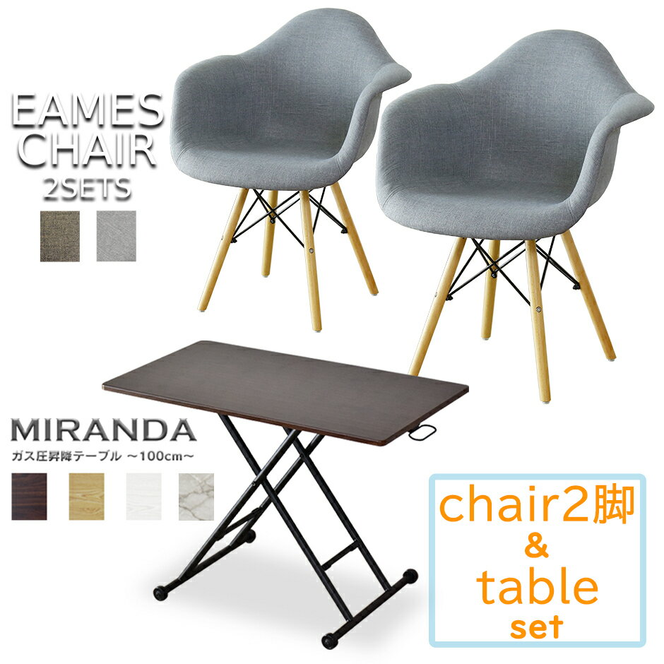 【4/29限定 クーポン10%オフ】ダイニングチェア 昇降テーブル チェア テーブル セット 2脚 デザイナーズ 昇降式 無段階 高さ調節 肘掛け ダイニング デスク イームズDAW肘付き ミランダ100cm 母の日